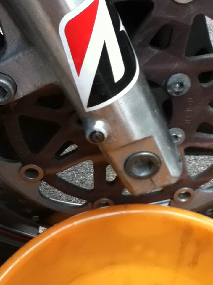 Fフォークにオイルを抜くためのドレンらしきものがFフォーク下部にあります。