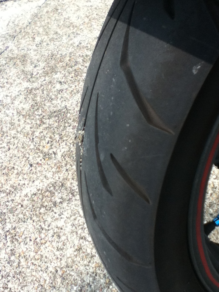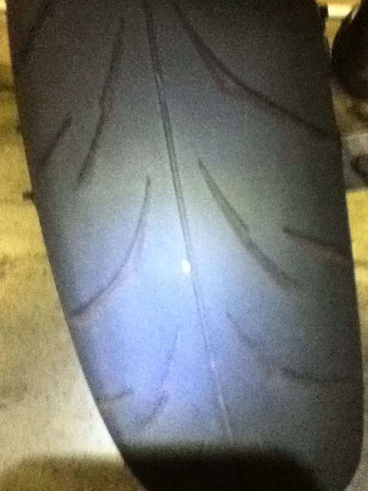 ふと、何か変なものをフロントタイヤで踏んだ感触があり、
