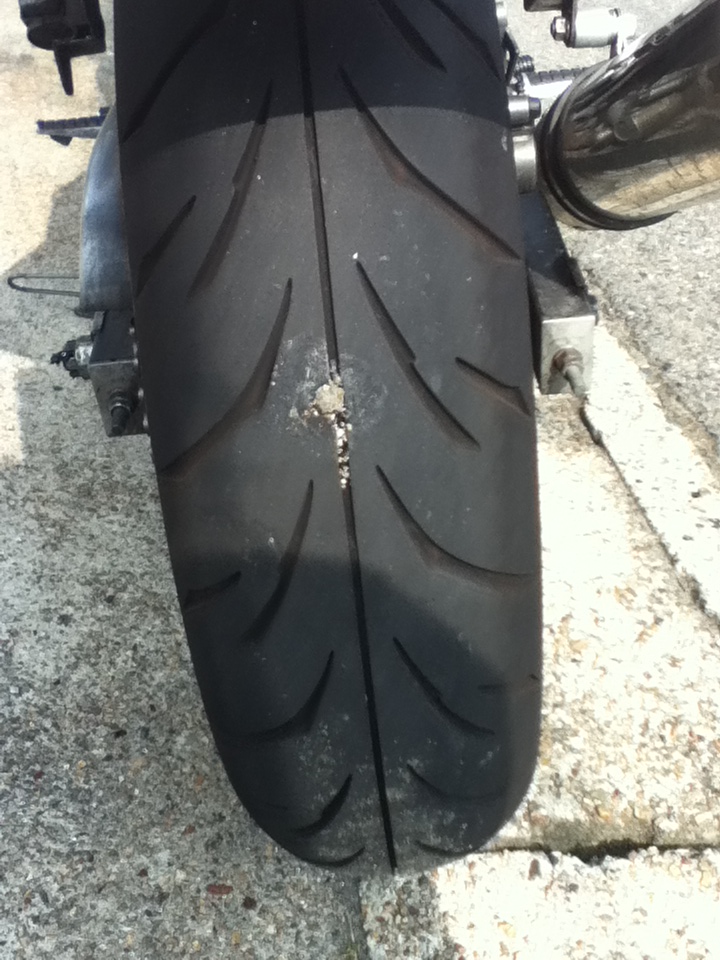 昨日に引き続きまして、ZZR250のパンク修理報告と